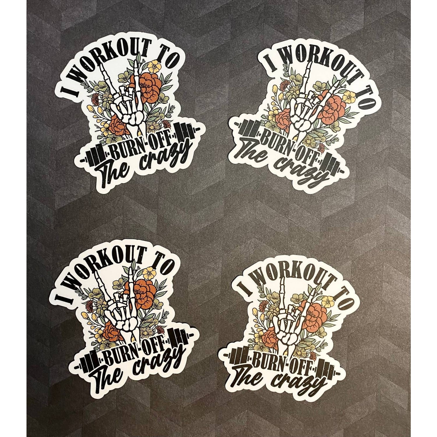 Whether you're leg-pressing your worries away or curling your frustrations into oblivion, do it with pride, you magnificent fitness philosopher! Slap your "I Workout To Burn Off The Crazy" Sticker on your water bottle and picture that treadmill as a conveyor belt whisking your stress away.