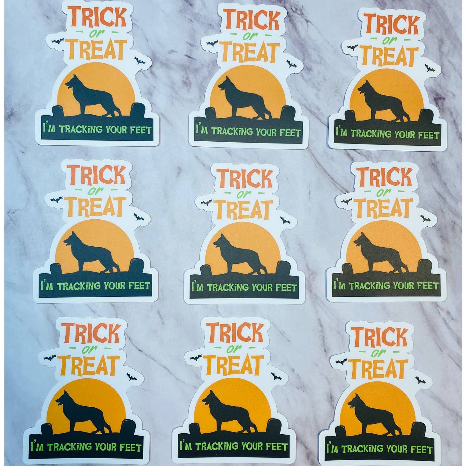 K9 Halloween Sticker Trick or Treat I'm Tracking Your Feet Spooky K9 Unit Police Dog, K9 Handler Sticker