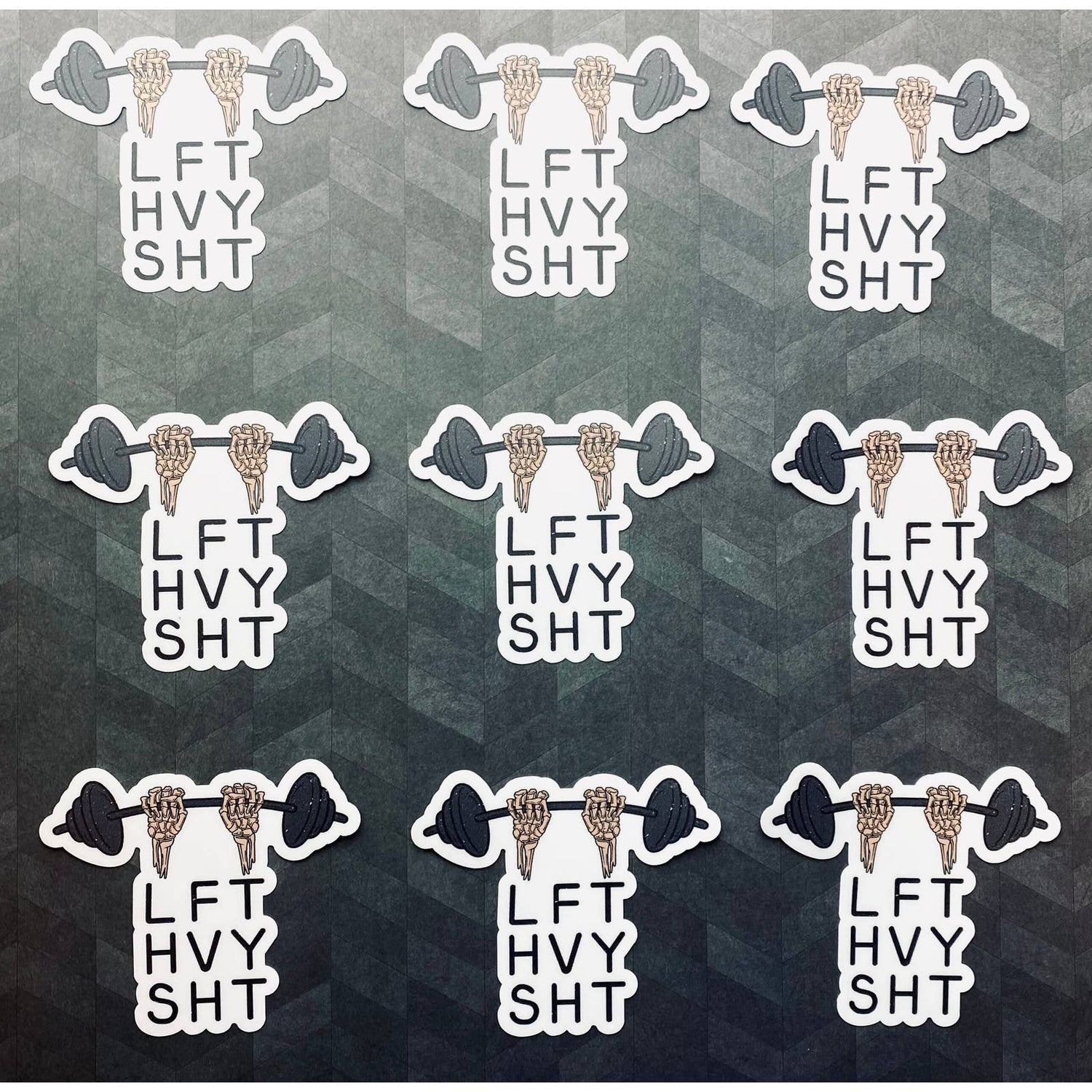 Lift Heavy Shit Sticker - LFT HVY SHT Skeleton Lifting Barbell Sticker for Gym Water Bottle