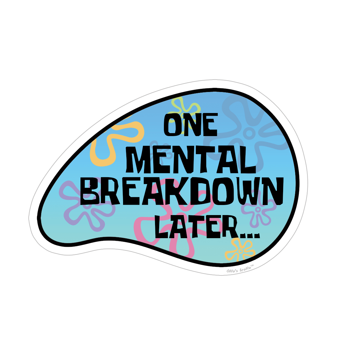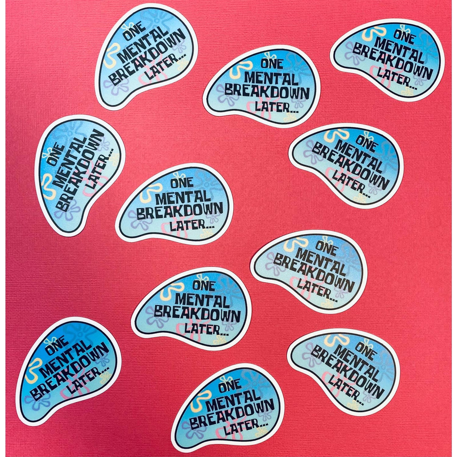🌊 🦀 Whether you're a fan of a certain sponge or just appreciate the humor of a certain crabby crustacean, this sticker is a must-have. Our hilarious sticker that perfectly sums up life's little moments when everything goes bonkers: "One Mental Breakdown Later"! 🤯