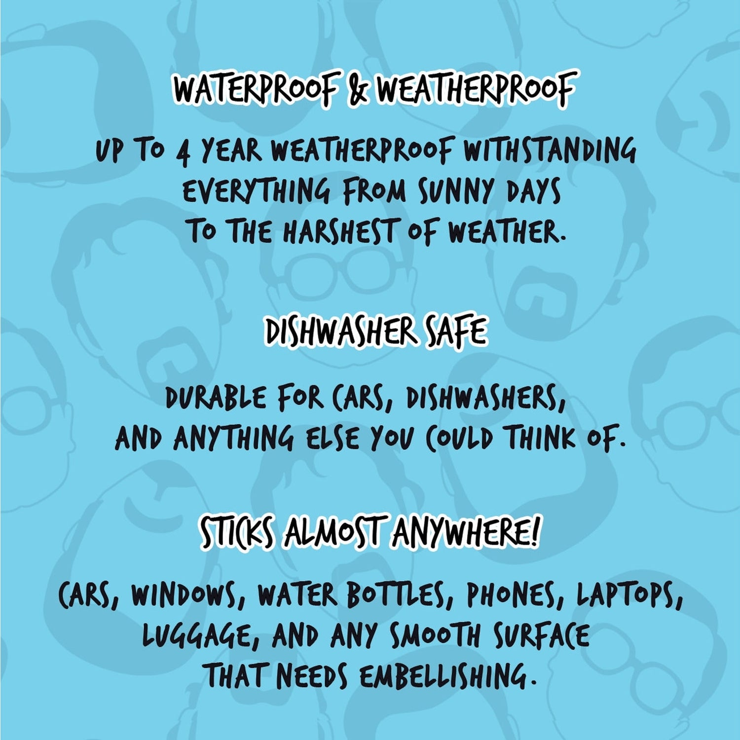 Experience the exceptional quality of our premium stickers! Crafted from thick, waterproof, and weatherproof vinyl made in the USA, these durable stickers are designed to last.